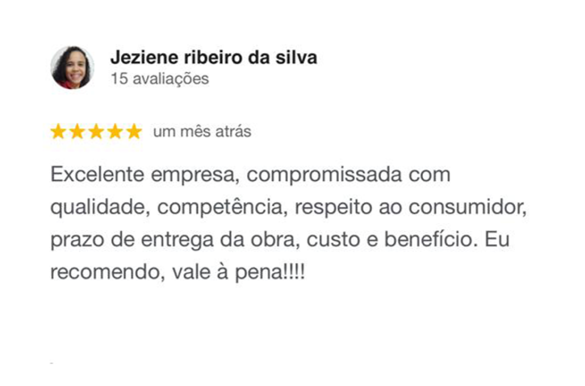 Nossas avaliações no Google refletem nosso compromisso com os nossos clientes.